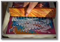 Специальные гребни. Эти инструменты для Эбру представляют собой небольшие гребни на деревянной или пластиковой основе с рядом параллельных иголок. С помощью таких гребней можно создавать фон либо симметричные узоры и орнаменты.