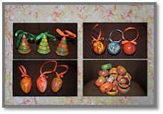Украшения в стиле Эбру всегда оригинальны и неповторимы. Украшения могут быть изготовлены как из дерева, так и из бумаги, расписанной в стиле Эбру. Изготовление бумажных бусин из такой бумаги, процесс очень кропотливый, но интересный. Здесь можно более подробно ознакомиться с процессом изготовления бумажных украшений в стиле Эбру https://nsportal.ru/detskiy-sad/razvitie-rechi/2019/03/15/master-klass-po-izgotovleniyu-bumazhnyh-ukrasheniy-v-stile